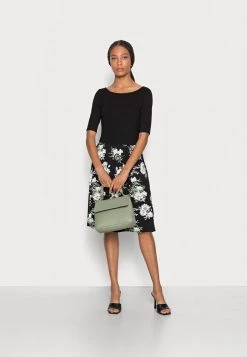 Top 10 โญ Anna Field BOAT NECK PRINT DRESS ๐ WITH SOLID SKIRT – Jersey DRESS – Black ๐งจ